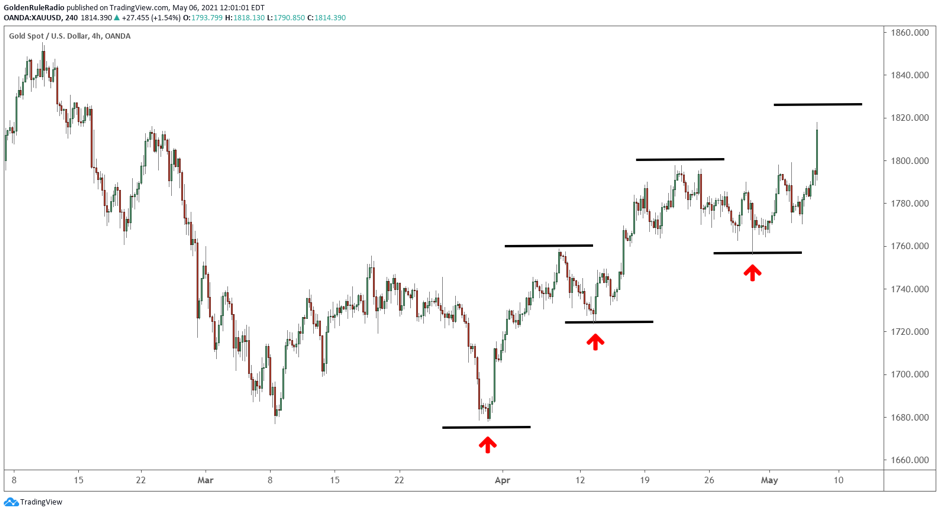 - After failing to push through $1,800 at least four times over the last few weeks, the price finally broke above. Higher prices are on the horizon.