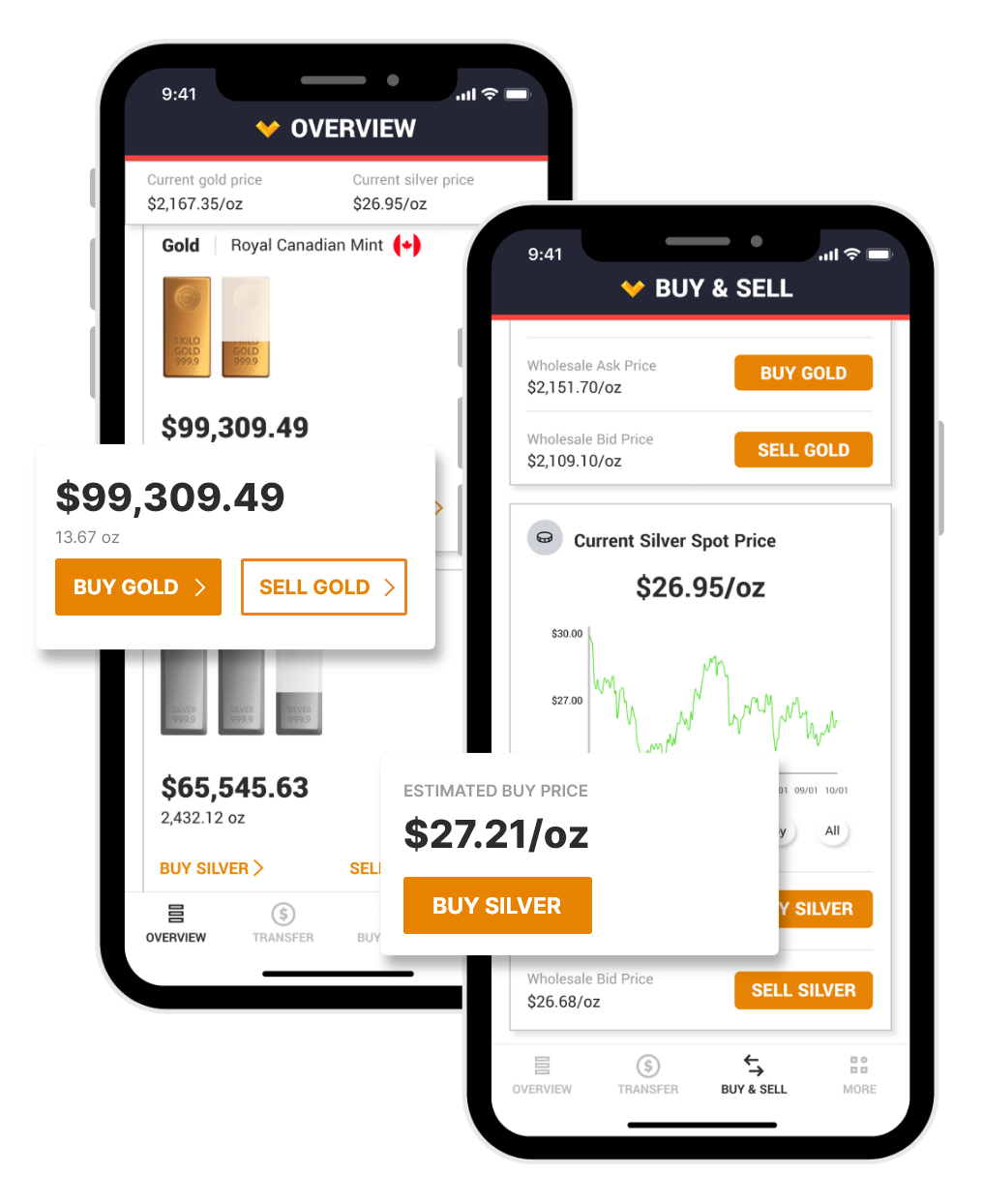 Through the Vaulted app, you own 99.99% pure gold kilo bars and pure silver bars. The gold bars are produced by and stored in the Royal Canadian Mint, a ISO-9001:2000 certified refinery. Your gold is certified conflict-free, fully insured, and guaranteed against theft, damage, or other losses. Gold allocated to you is never mixed with anyone else’s gold. You have direct ownership of specific bars, which means your holdings can never be leased or used by Vaulted or the Royal Canadian Mint. Only with your permission can your gold be physically delivered to your home, business, or another vault via FedEx.