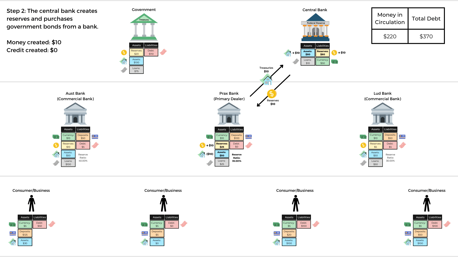Previous ImageNext Image The central bank creates reserves and purchases government bonds from a bank