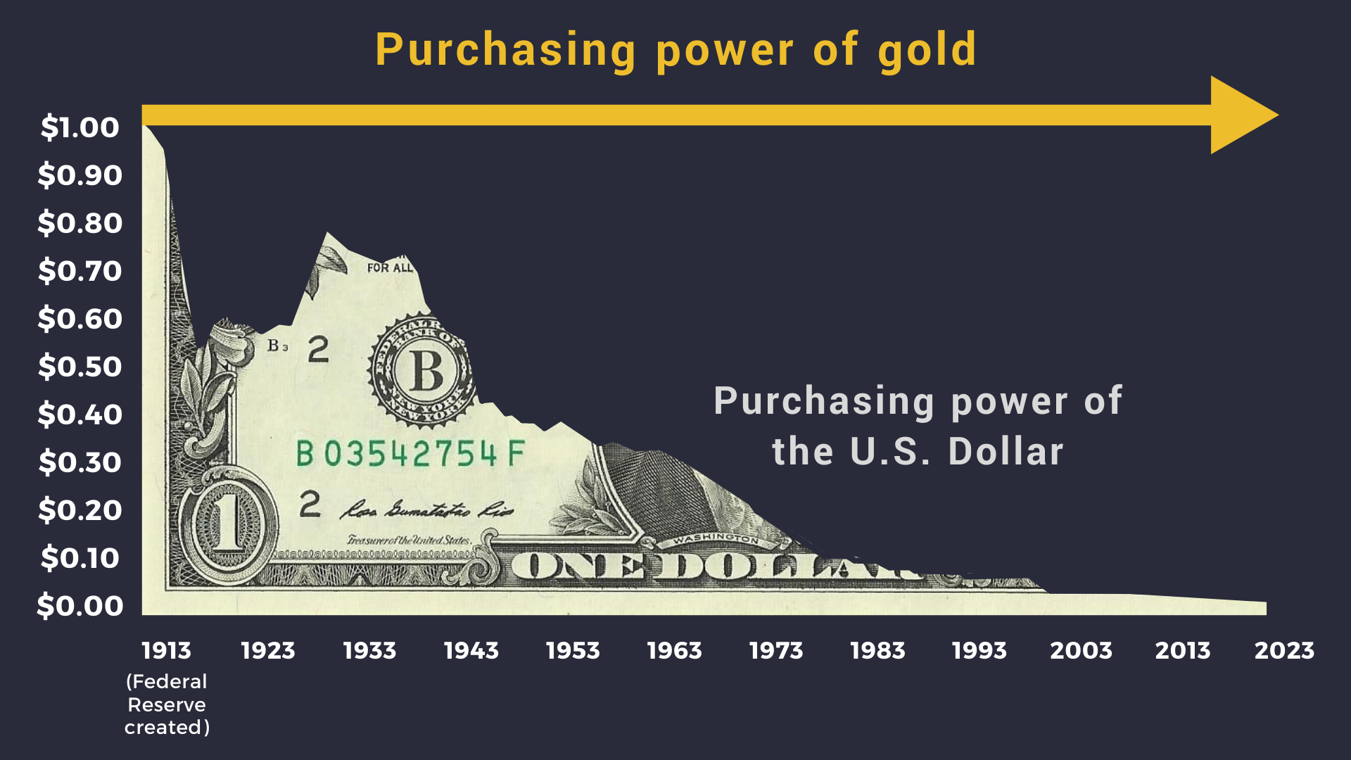 Governments employ central banks to control the money supply and interest rates. As you can imagine, controlling the most important aspect of an economy, money, is an impossible task – which is why central banks have such a terrible track record. The U.S. dollar has lost 98% of its purchasing power since the creation of the Federal Reserve in 1913.