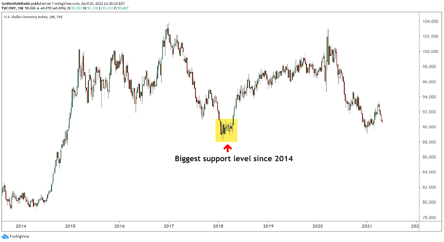 The index is now approaching the 89 range, which is a key support level dating back to early 2018. During the last downtrend, the dollar could not break through 89. We will be watching closely to see if the index bounces again or drops below 89 in the coming months. If we had to guess, mounting inflationary pressures in the U.S. economy will continue to rack the currency.