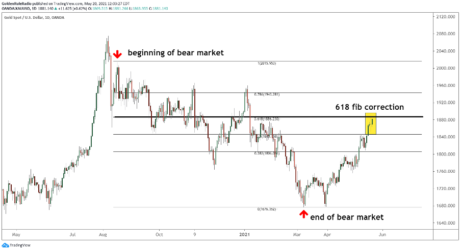 $1,885 also corresponds to an important hurdle we saw earlier in 2021. Gold broke through the first hurdle on May 7th, which was around $1,815. If gold breaks confidently above $1,885, we would like to see it turn around and bounce off that level before moving higher, just like it did at $1,815 on May 12th.