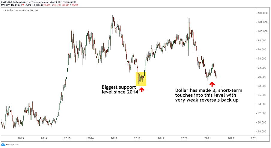 The U.S. Dollar Currency Index made its third break below 90 this year, putting more pressure on this strong support level. So far, the dollar has stayed above its 2018 lows.